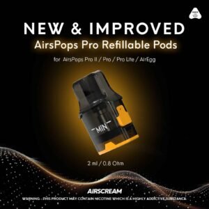Airscream Airspops Pro II將創新設計與頂級性能完美結合,專為追求高品質生活的你打造。全新 2 代註油主機,支持多種口味自由切換,讓每一次使用都充滿驚喜。